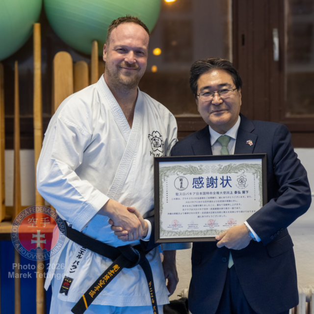 Pre náš klub bolo obrovskou cťou a privilégiom, že sme mohli odprezentovať našu dlhoročnú činnosť, prácu s mládežou aj dospelými a predovšetkým našu oddanosť tradičnému okinawskému bojovému umeniu priamo pred zástupcom krajiny, kde má karate svoje korene.